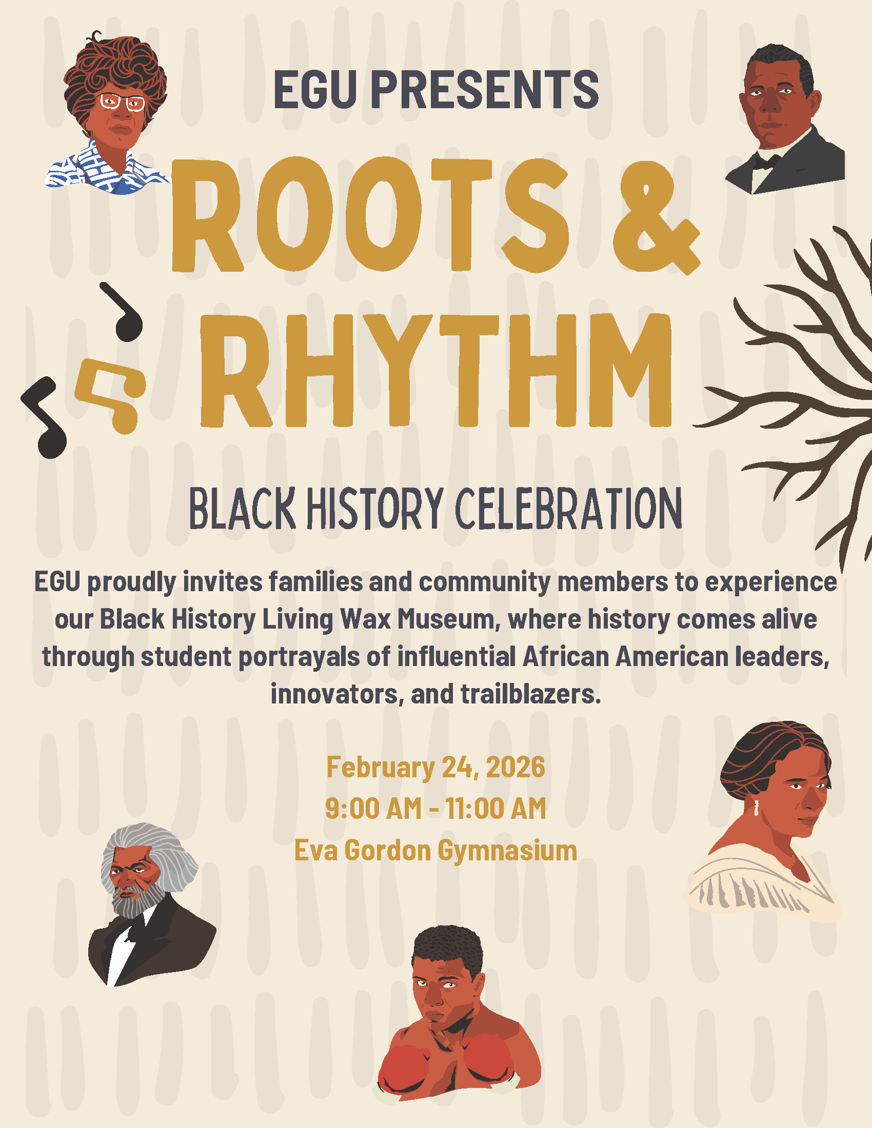 EGU proudly invites families and community members to experience our Black History Living Wax Museum, where history comes alive through student portrayals of influential African American leaders, innovators, and trailblazers.