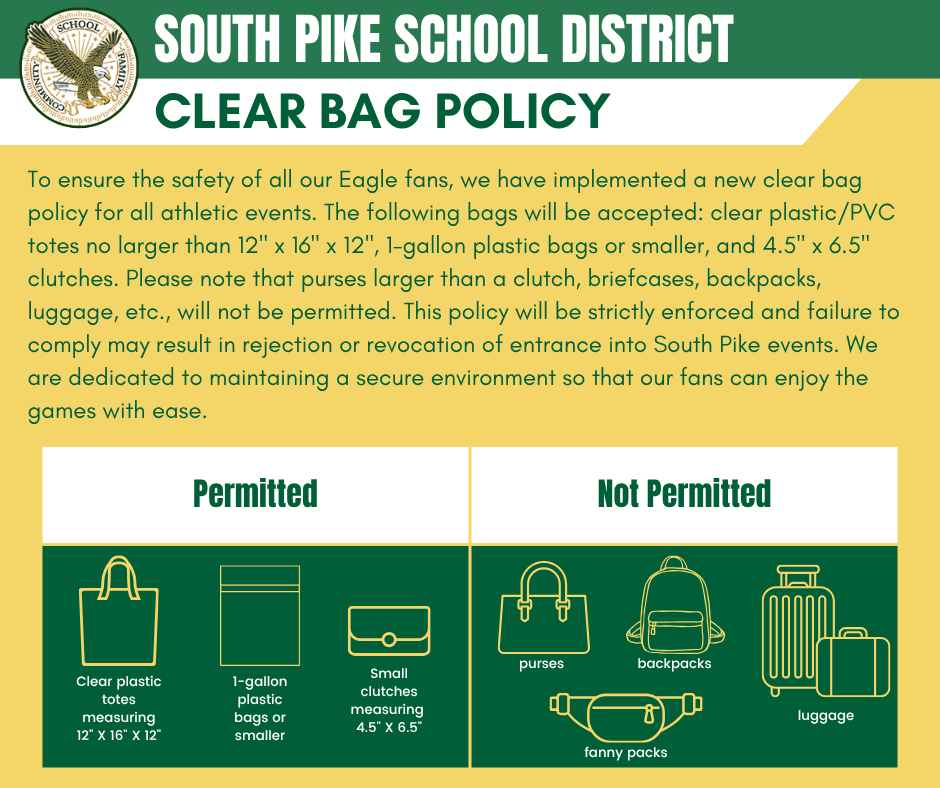 Join us this week for exciting games! Remember, the Clear Bag policy is in placeβno outside food or drinks allowed. Tickets can be purchased through GoFan, cash, or debit at the gate. Let's cheer on our teams together! π #SouthPikeAthletics