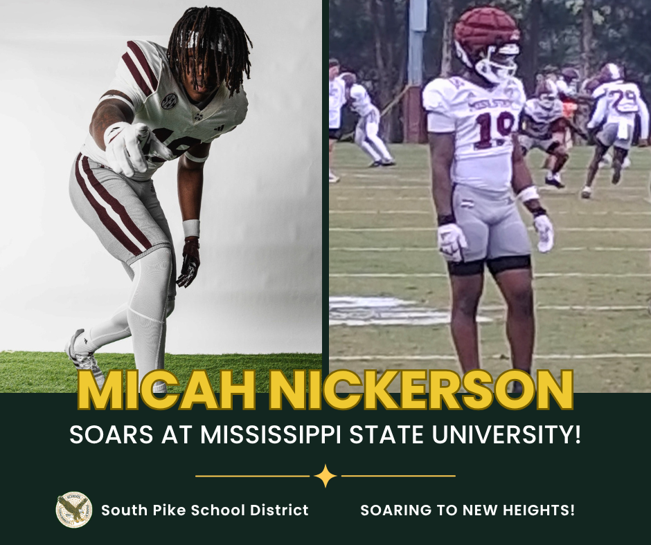 We are thrilled to share that Micah Nickerson is achieving great success at Mississippi State University! From his roots in the South Pike School District, Micah has truly soared to new heights. Join us in celebrating his accomplishments and cheering him on for the journey ahead. We couldn't be prouder! 🌟 #SoaringToNewHeights #MSU